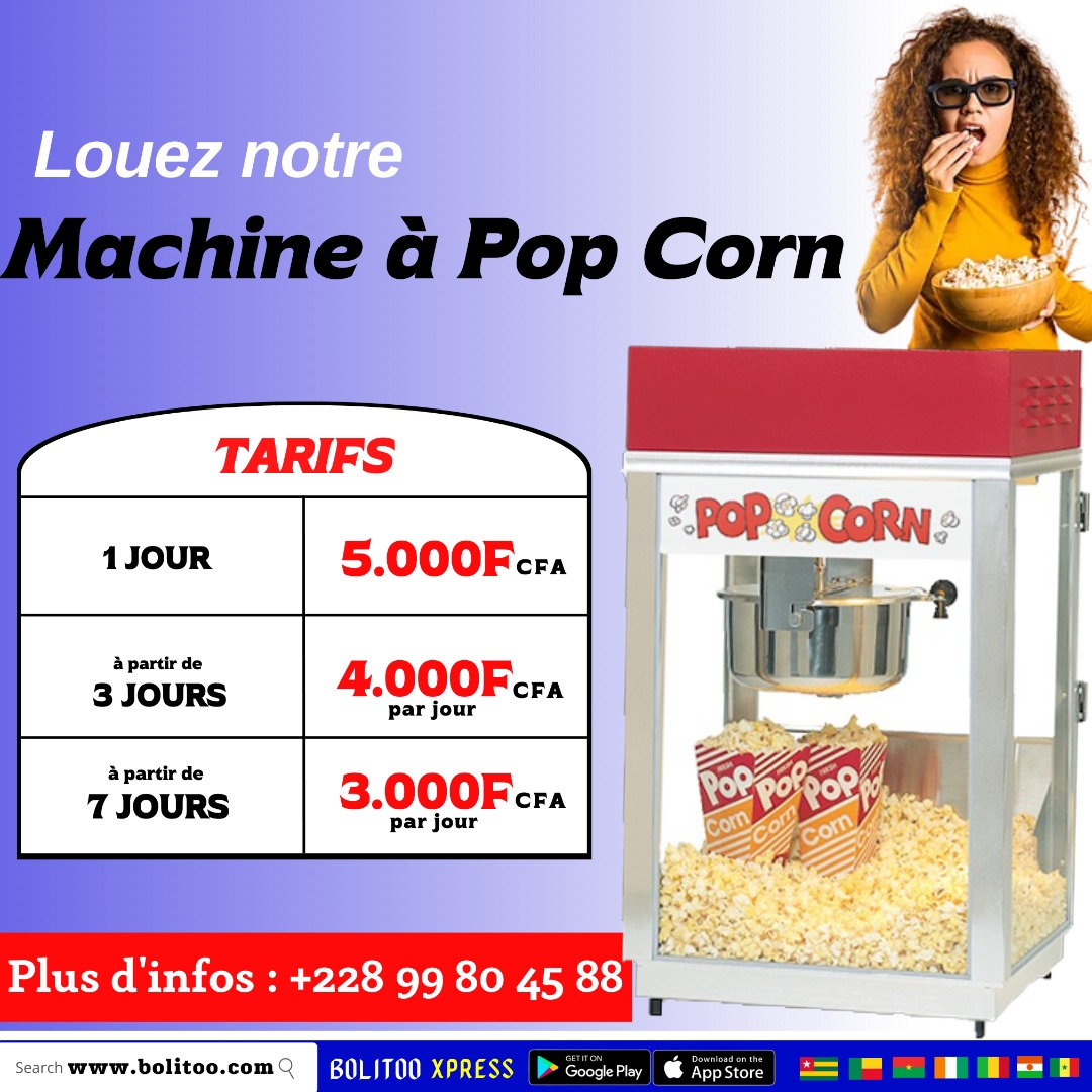 Des machines à pop-corn à louer selon vos besoins.