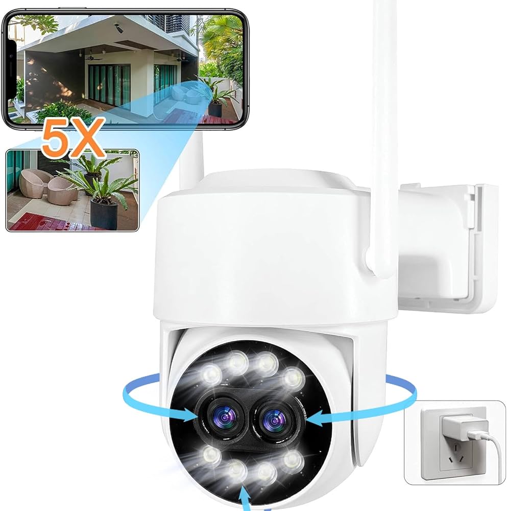 • 𝗗𝗼𝘂𝗯𝗹𝗲 𝗢𝗯𝗷𝗲𝗰𝘁𝗶𝗳 𝗜𝗻𝗻𝗼𝘃𝗮𝗻𝘁, 𝗭𝗼𝗼𝗺 𝗛𝘆𝗯𝗿𝗶𝗱𝗲 𝟱𝘅: Cette caméra surveillance wifi adopte une conception innovante à double objectif, réalisant parfaitement un zoom hybride 5x pour afficher Full HD 1920p de gros plan ou d’aperçu. Cette caméra surveillance wifi extérieure effectue une rotation silencieuse de 355° horizontalement et de 90° verticalement. offrant un angle de vue à 360°.